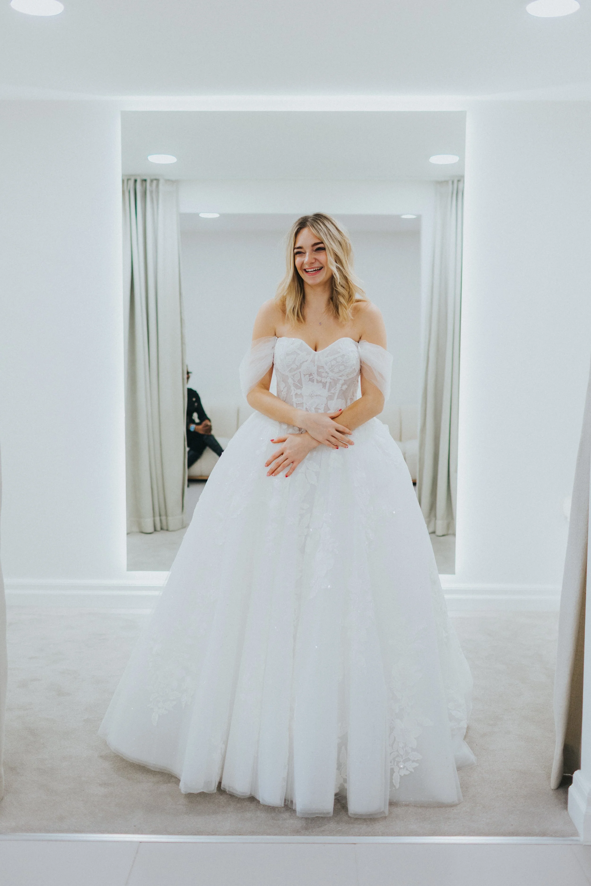 What really sets us apart is everything that happens after you say yes. We’re a proper one stop bridal shop, so you do not have to spend months lining up seamstresses, juggling different people, or worrying about where your dress is being kept. We take care of it all: bespoke alterations, safe storage, steaming, and final prep in the run up to your wedding, making sure your gown looks just as perfect as it did the moment you fell in love with it.
