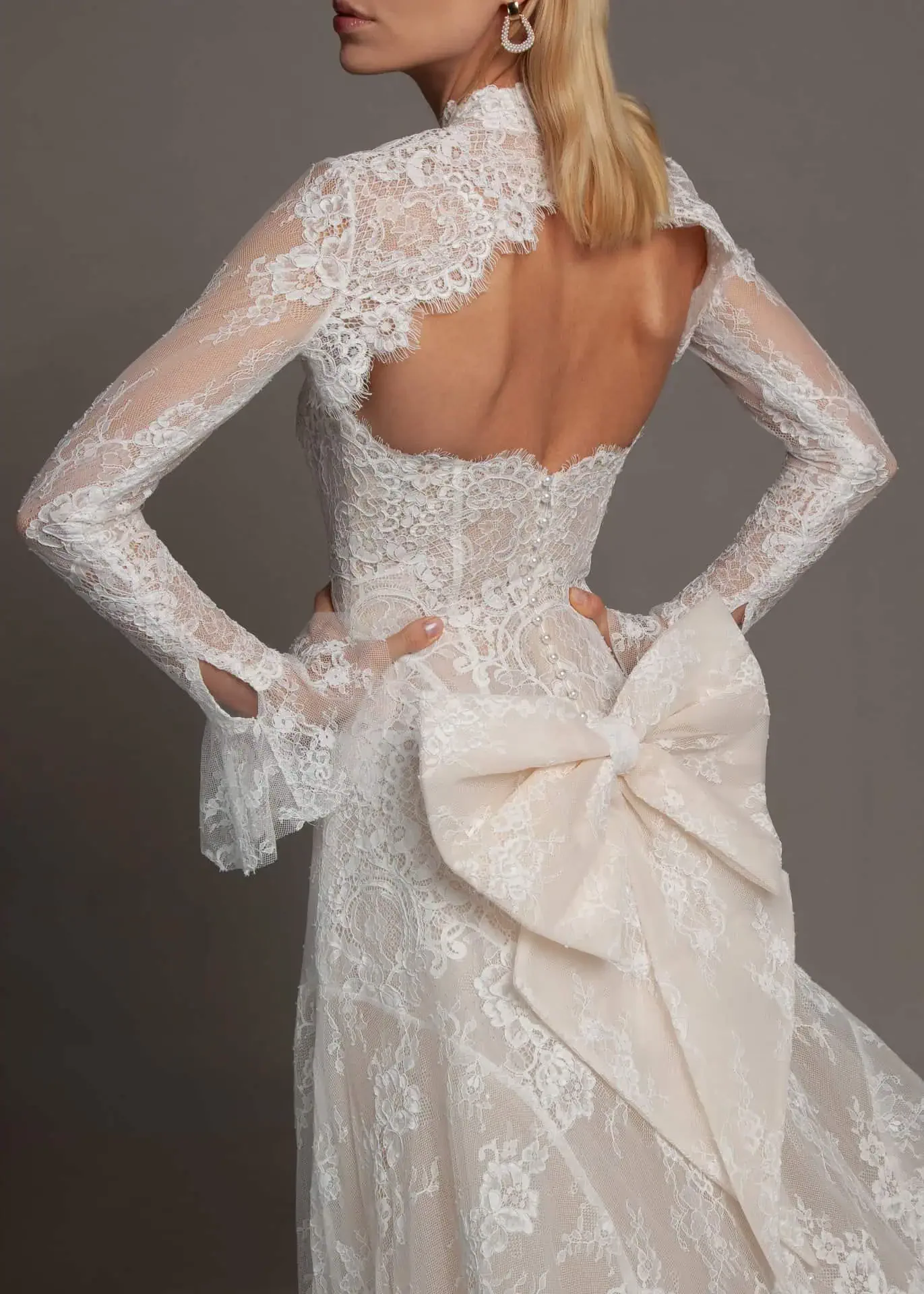 A statement-sized bow designed to sit at the back waist for instant drama. Shown here in lace, it layers beautifully over TAYLOR and adds a romantic, fashion-forward finish with soft structure and a trailing ribbon detail.